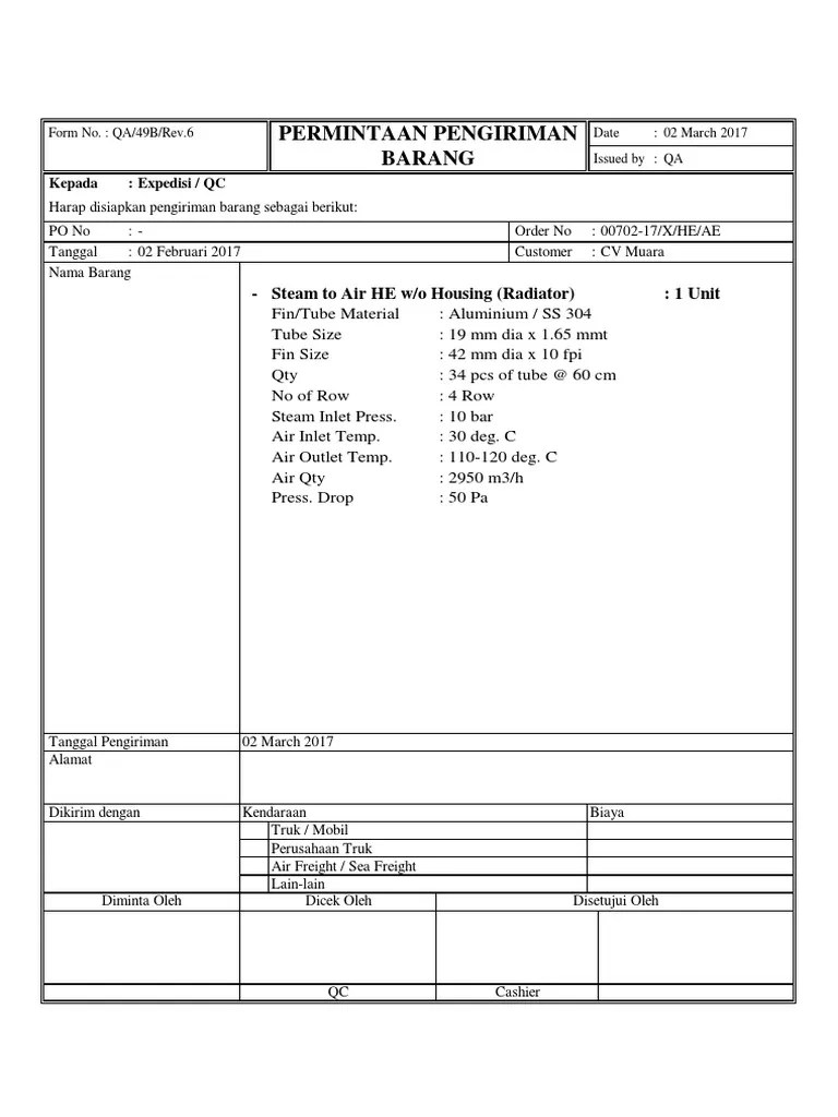 Form pengiriman shipment word 5.